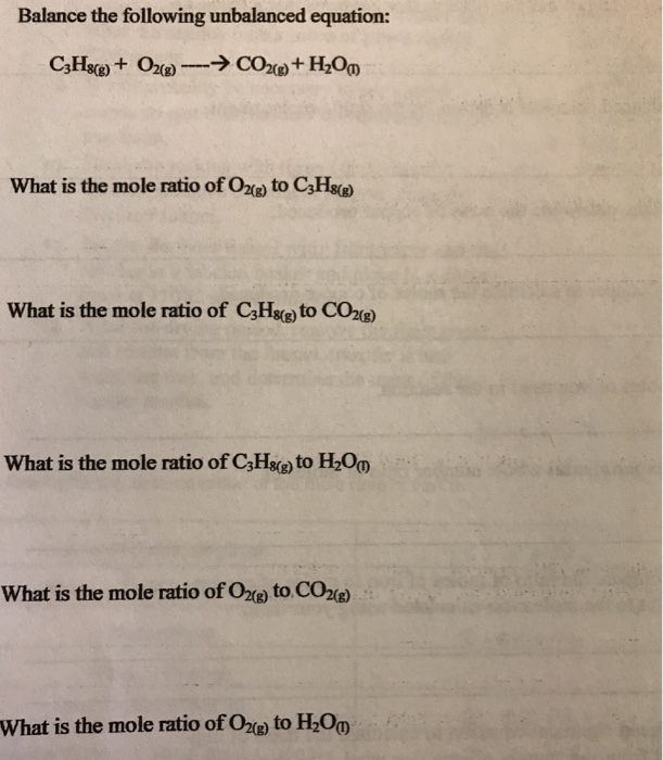 Solved What Is The Mole To Mole Ratio Of A C3h18 To O2 B Chegg Com